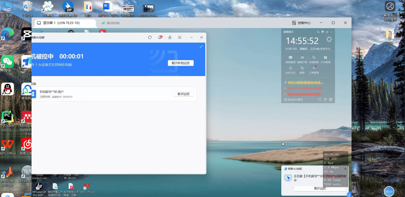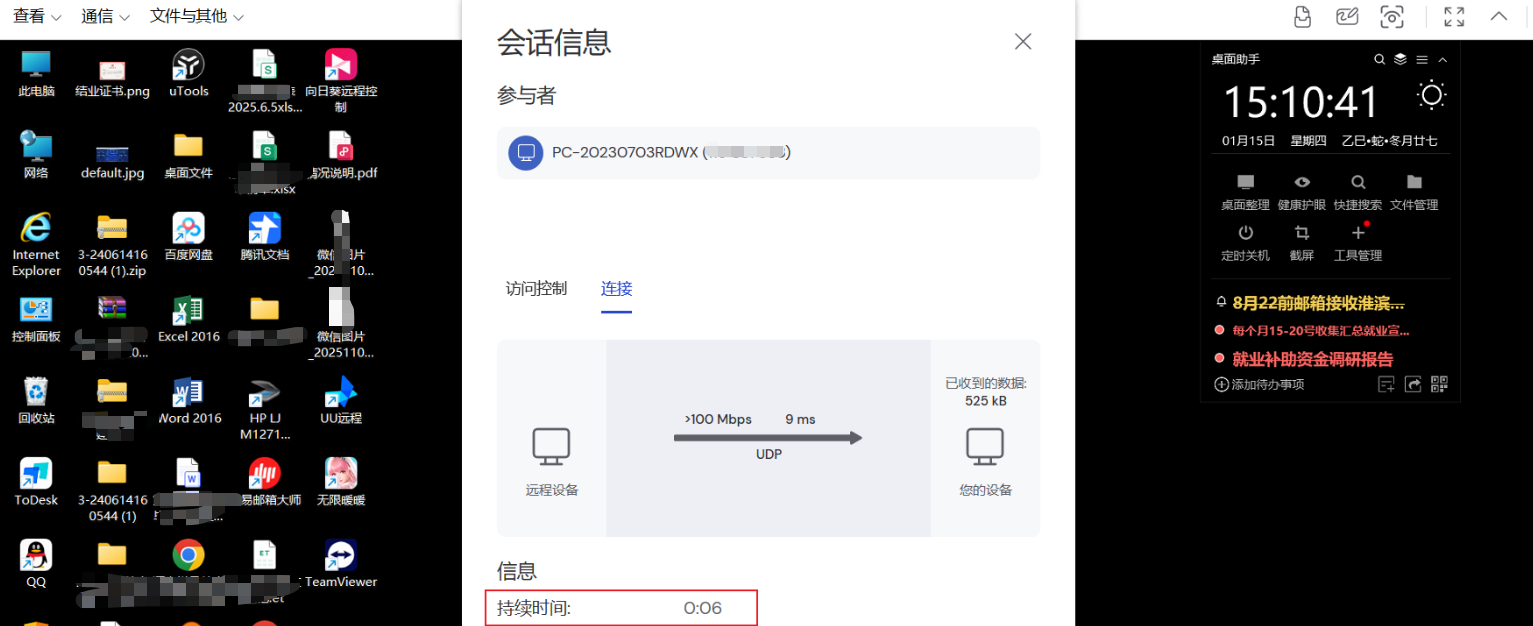 在被控端同时运行并显示视频播放、数据刷新、文档编辑、QQ聊天四个窗口,在此多数据流并发场景下,ToDesk表现出了优秀的渲染稳定性,各窗口内容更新及时,切换流畅,验证了其引擎对复杂任务调度的有效性。