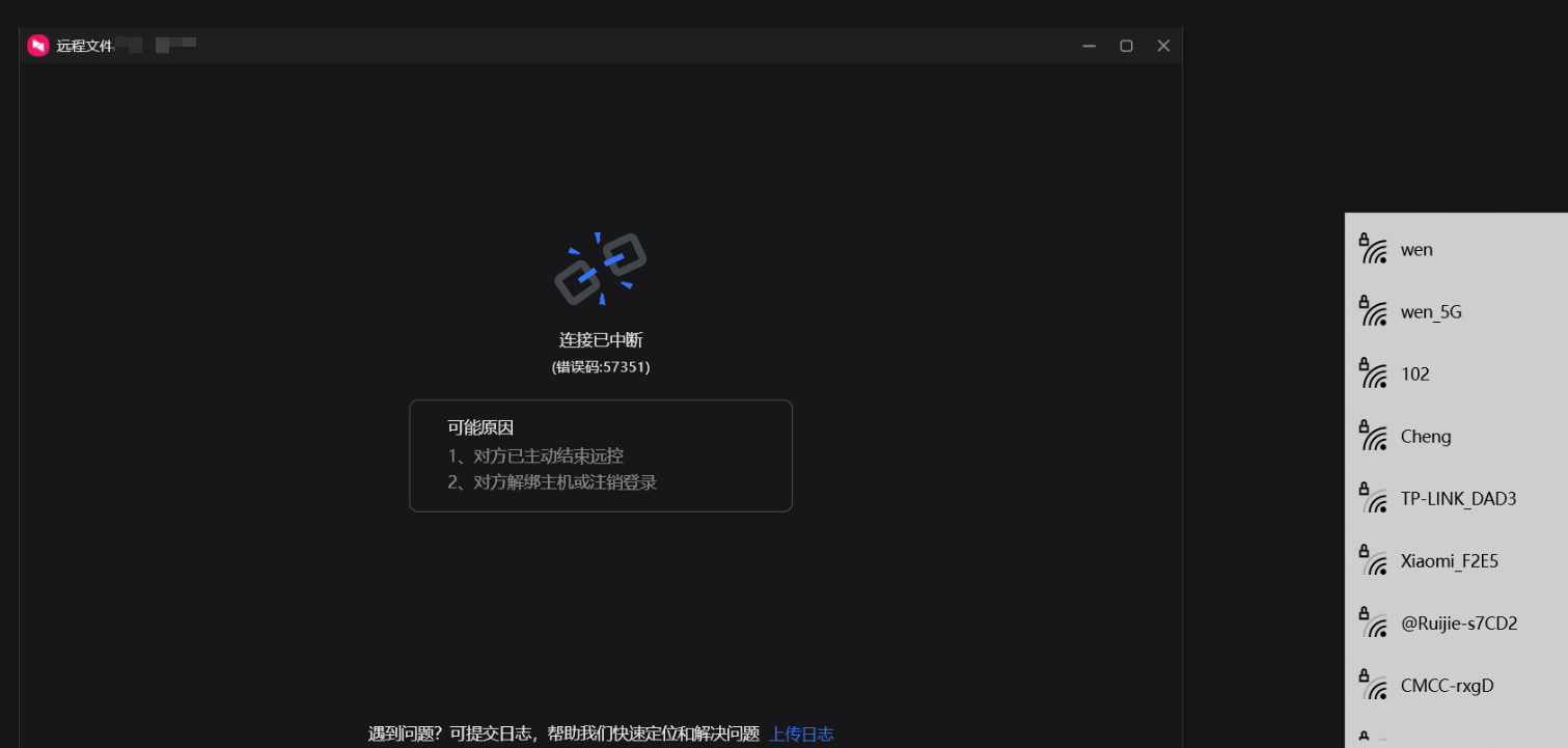 - 向日葵:当传输进度达 80% 左右时主动断网,工具直接弹出 “连接已中断” 提示,传输进程完全终止;恢复网络后,无法自动识别断点,需要重新手动选择文件并启动传输,续传速度约 2.1MB/s,自动化程度较低,仅适合对续传效率要求不高的轻量场景。