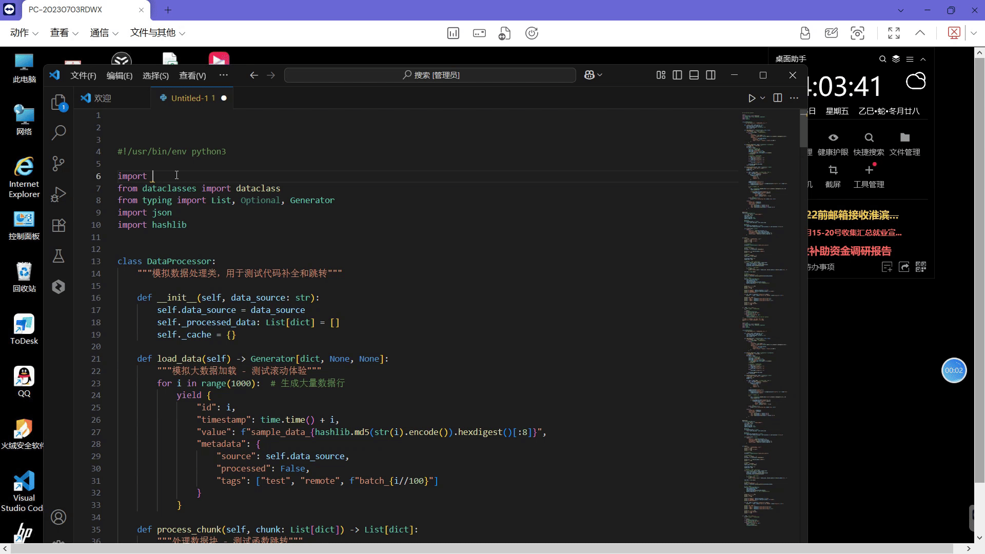 - ToDesk:远程操作 VS Code 进行 Python 代码编辑时,键入字符、滚动超长代码文件、触发语法高亮的过程均无延迟,字符显示与本地操作几乎无差,画面反馈也能实时同步,未出现卡顿、拖影或字符错位问题。