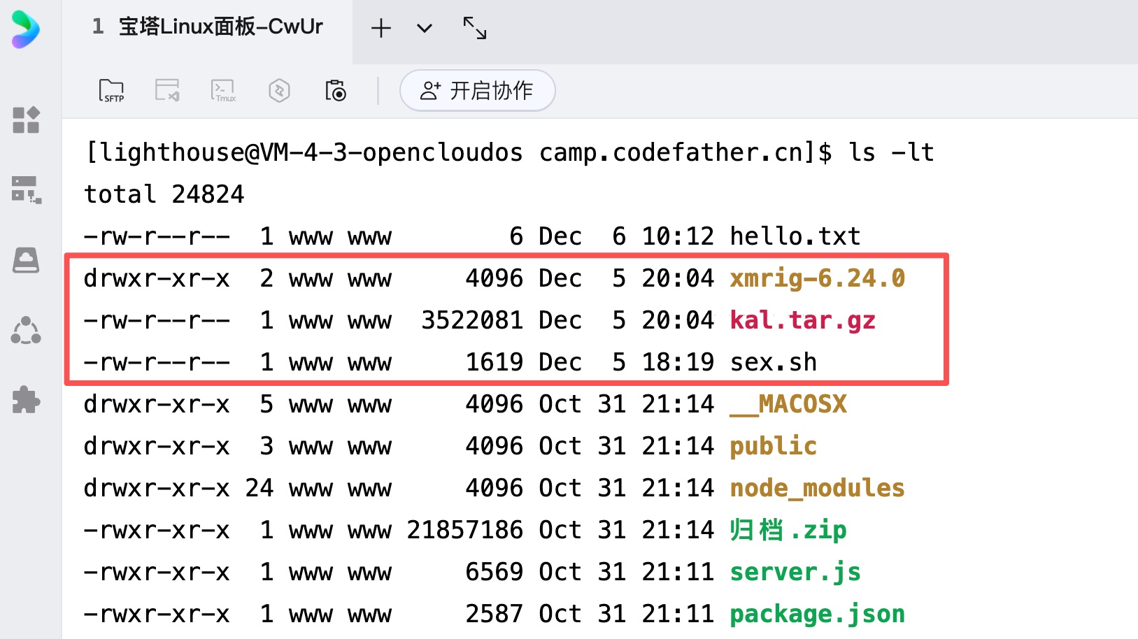 然后是第二天早上 6 点多,攻击者不讲武德,给我的服务器植入了第二个恶意程序。