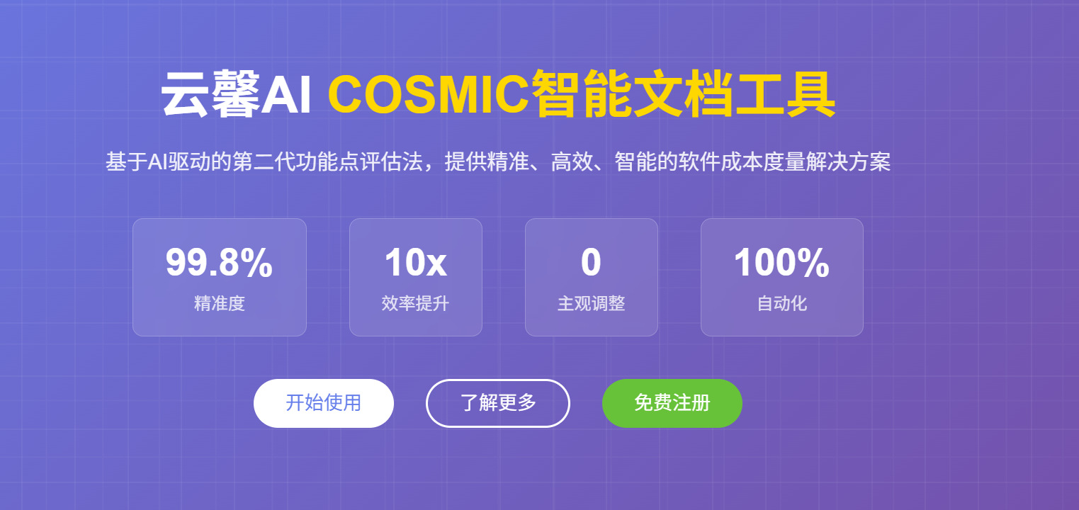 AI COSMIC 智能文档分析工具由 苍狮技术团队 / 云馨 AI 打造,面向软件工程中的 规模度量与工作量评估场景。