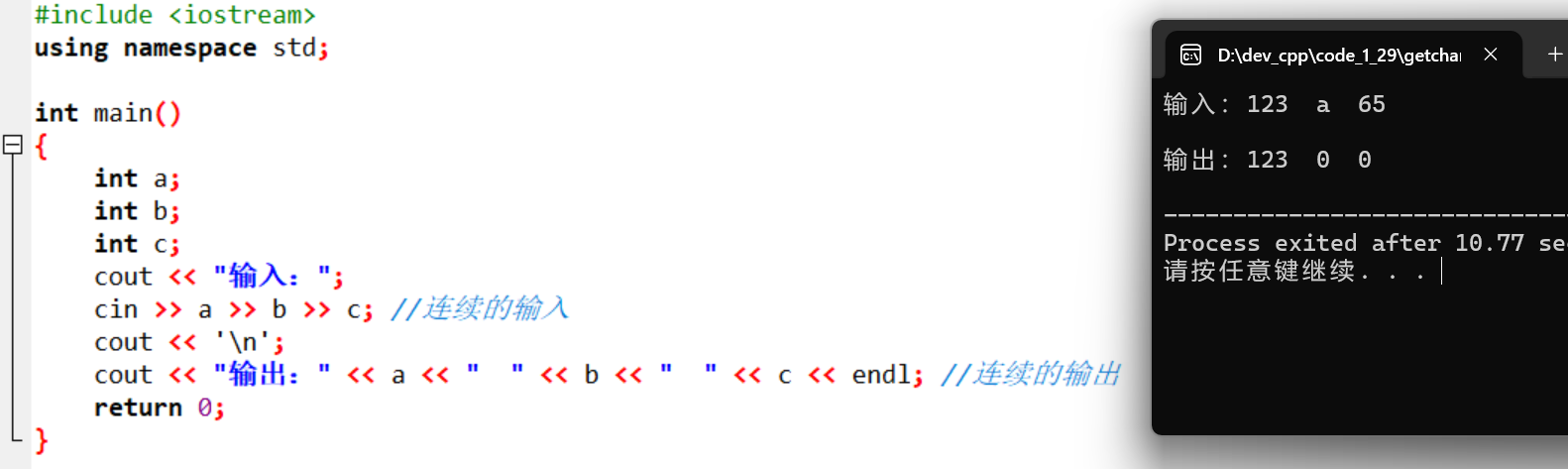 并以 cout 对象作为返回值返回,因此我们还可以用 << 在后面连续输出多个内容,通过连续输入输出的方式对代码进行编写