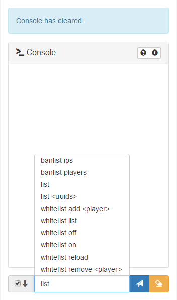 通过简洁的Web界面直接向服务器发送各种命令,包括玩家管理、服务器维护等操作。