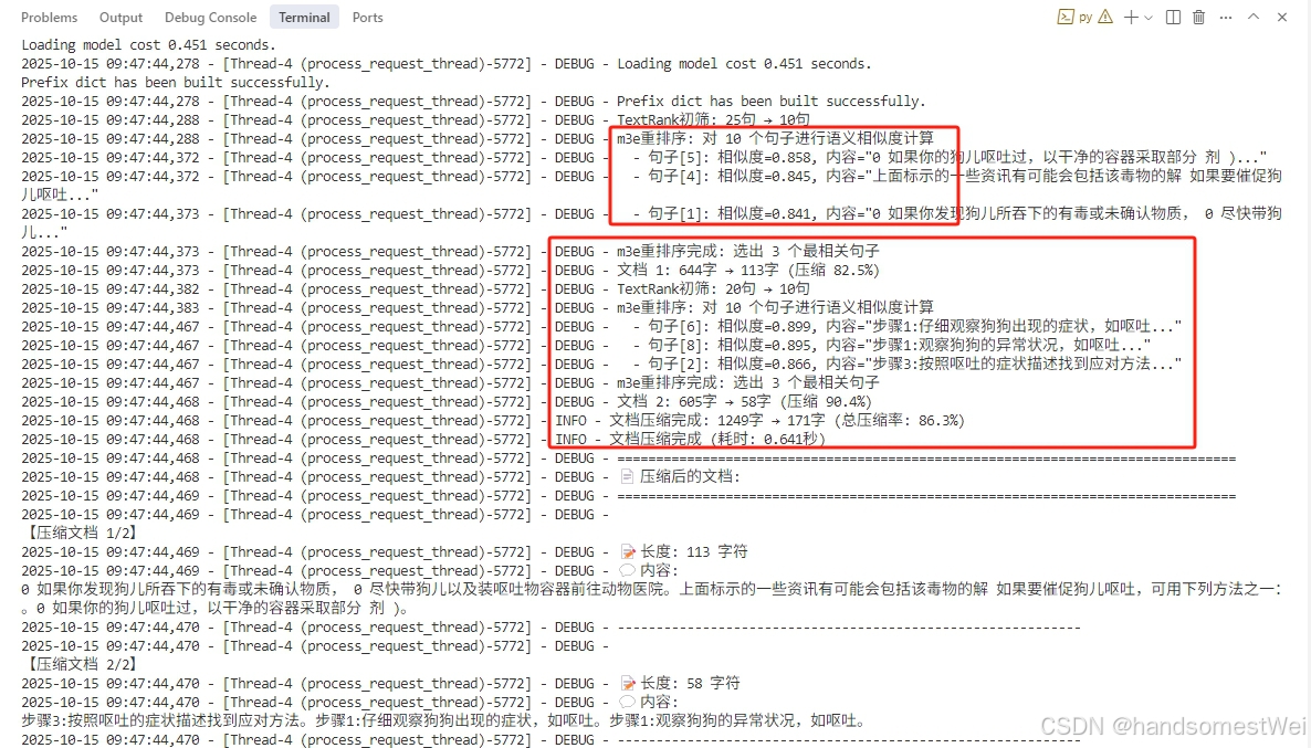 使用 TextRank + 语义重排 双重压缩技术: