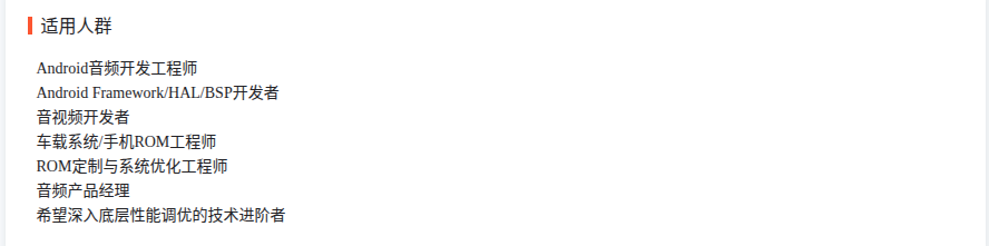 课程试看地址:专题六:Android15 手机+车载 音频性能实战课(无声/杂音/断音/爆音解决方案)