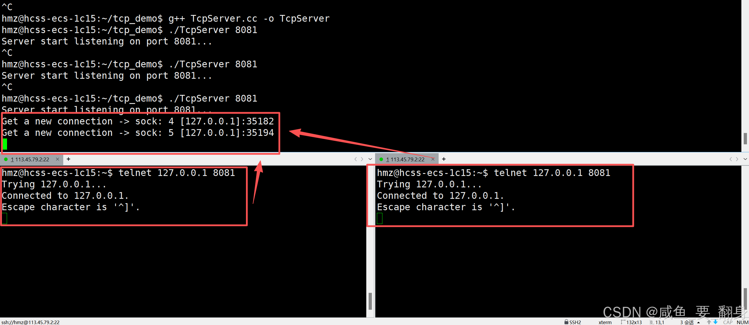127.0.0.1:8081(连接到服务器8081端口(也就是TcpServer的端口)) -