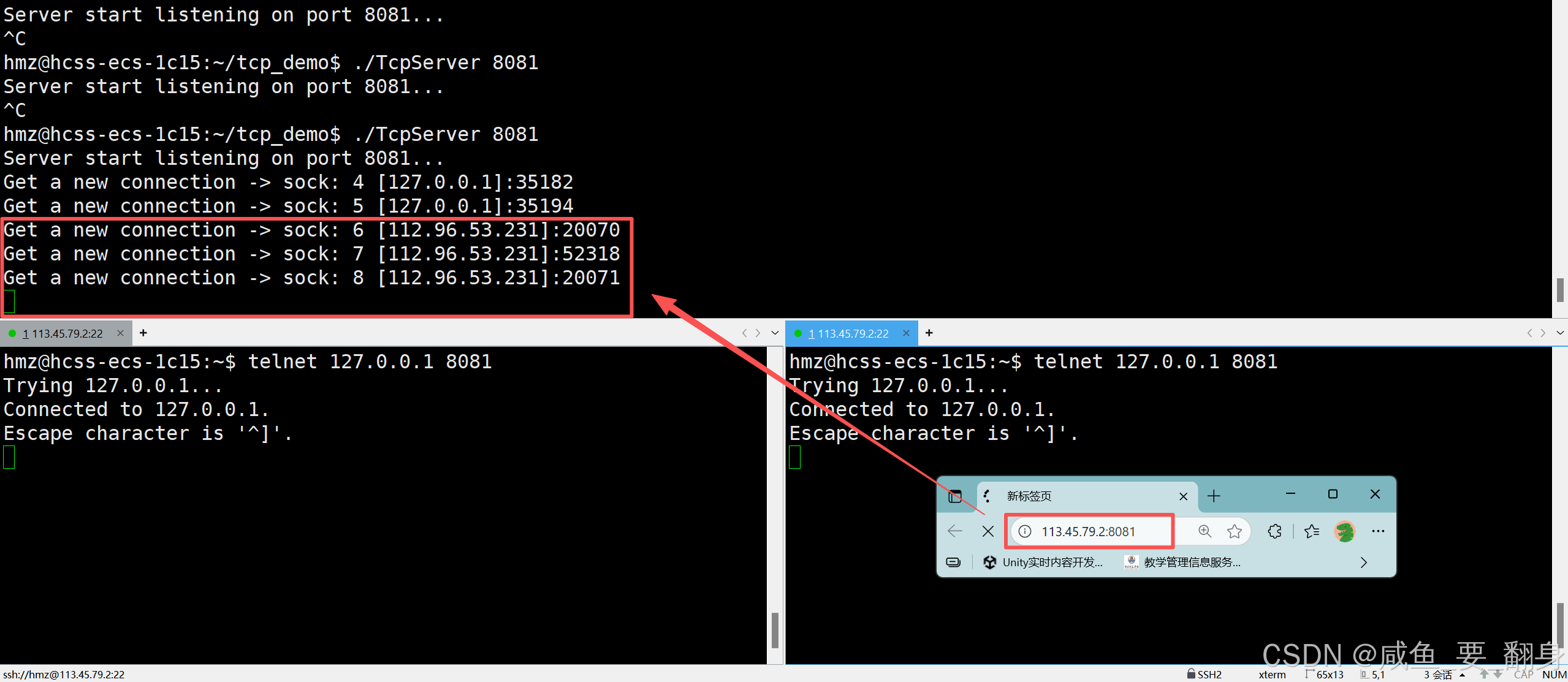 127.0.0.1:8081(服务器监听8081端口(也就是TcpServer的端口)) -