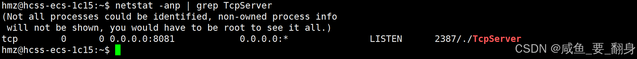 此时我们再开一个新的终端窗口使用netstat命令来查看网络连接状态,如下: