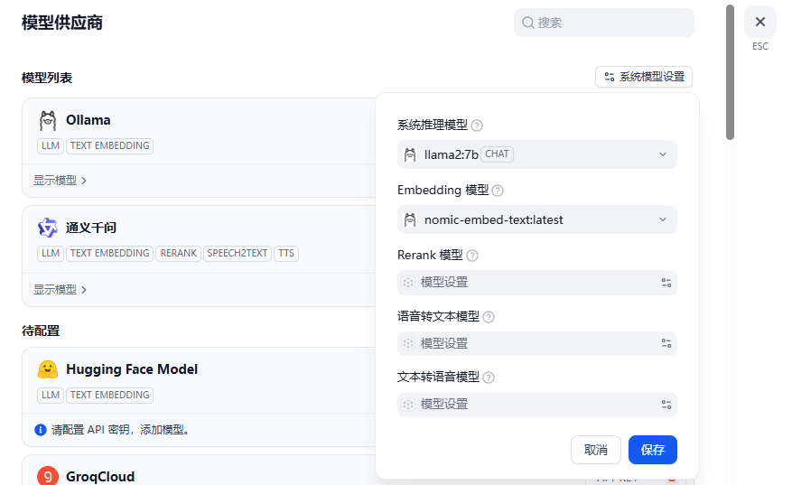 添加完成后,在系统模型设置中添加ollama路径中的模型,保存后就可以使用了。