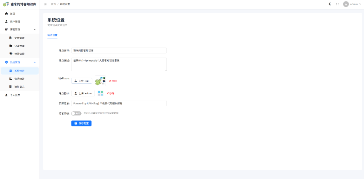 系统支持完全动态的站点配置,用户可以通过管理界面实时修改网站名称、站点Logo、Favicon图标等外观元素,无需重新部署应用。这种设计使得系统具备了高度的可定制性和品牌适应性。