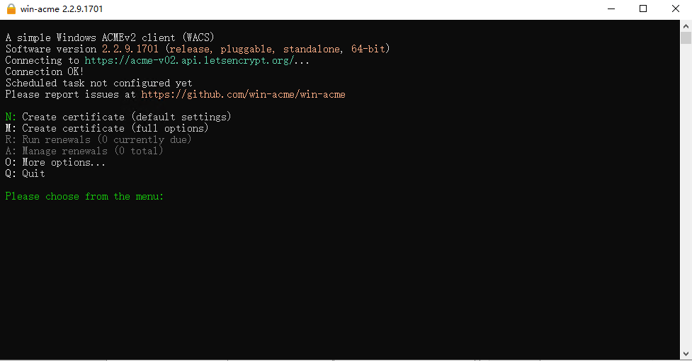 使用 win-acme 对Windows Server的站点进行自动申请和使用自动任务进行续签,可以极大方便windows用户。而且这个过程也几乎都是通过UI交互界面进行配置,对用户的操作要求不高。