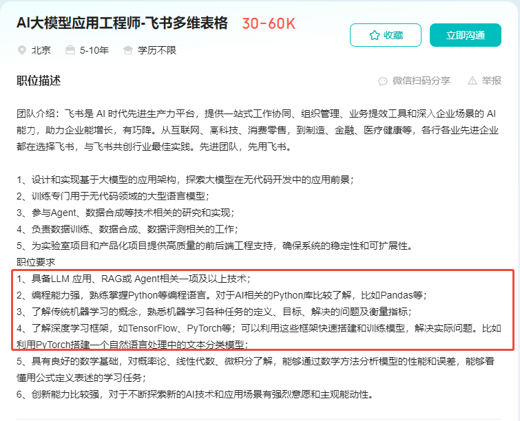 人才的稀缺性,直接反映在薪资水平上。据BOSS直聘、智联招聘等主流平台数据显示,AI应用开发相关岗位薪资普遍比传统软件工程师高出30%-50%。更值得关注的是,具备2-3年后端开发经验(尤其是Java技术栈),且掌握AI与大模型开发技能的工程师,年薪40万+已成为行业常态,部分一线城市头部企业为抢人,甚至开出60万+年薪加股权的丰厚待遇。