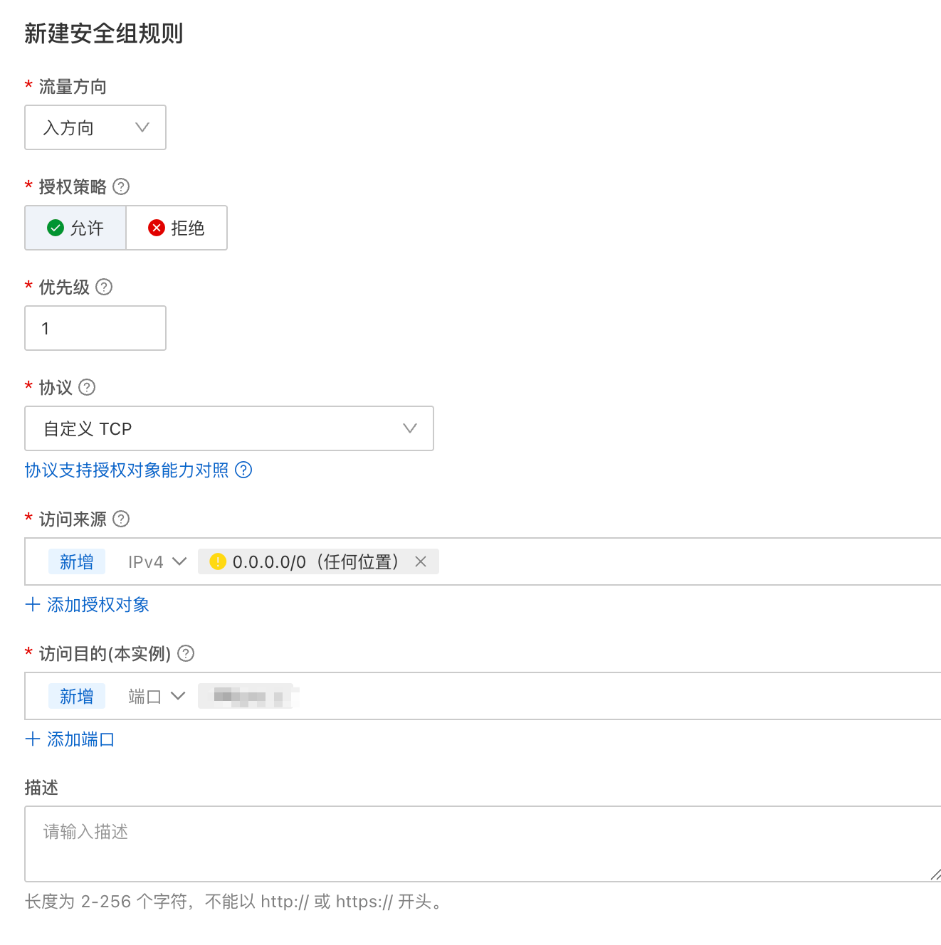 在实例安全组的入方向,添加安全组规则,放行刚才开放的宝塔端口