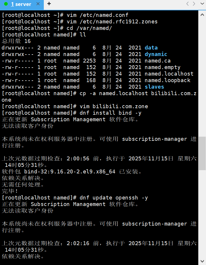 # 因为安装bind 会自动升级openssl可能会导致ssh无法登陆