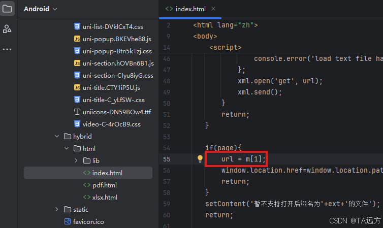app/assets/wwwroot/hybrid/html/index.html这个文件里面,第54行位置添加一行代码url = m[1];就算解决了;