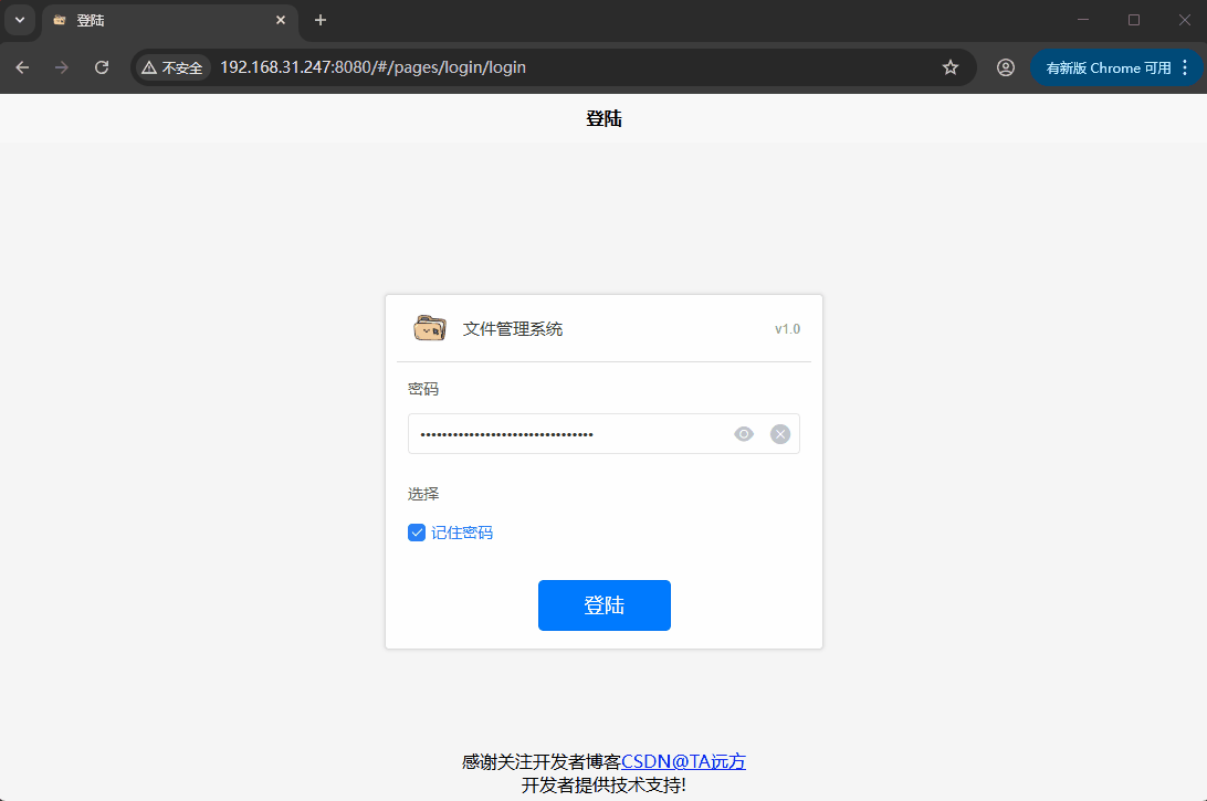 点击打开浏览器按钮,就会打开系统自带的浏览器,直接访问文件管理服务器的H5页面,
