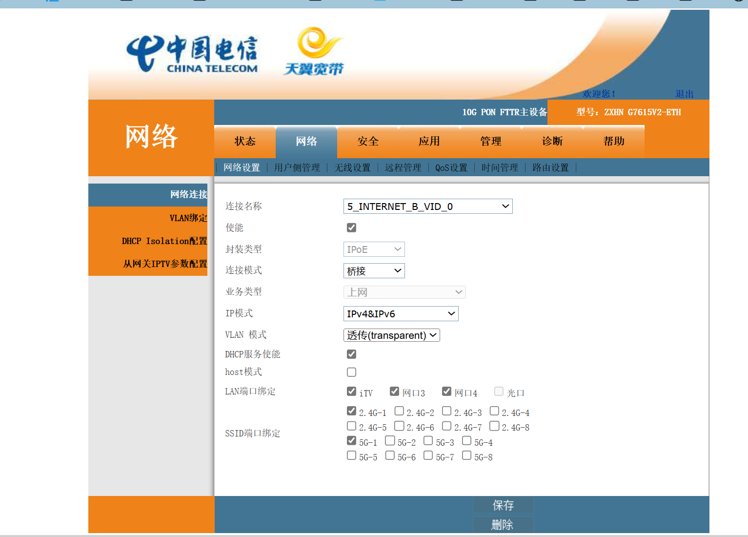 注意:有的光猫需要ITMS注册成功才能上网,其他型号你需要自己去研究怎么强制ITMS注册,一般在“设备”里面有扭转强制注册的按键。