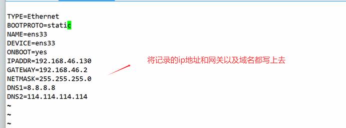 vim /etc/sysconfig/network-scripts/ifcfg-ens33,进入 按字母 i写入一下内容