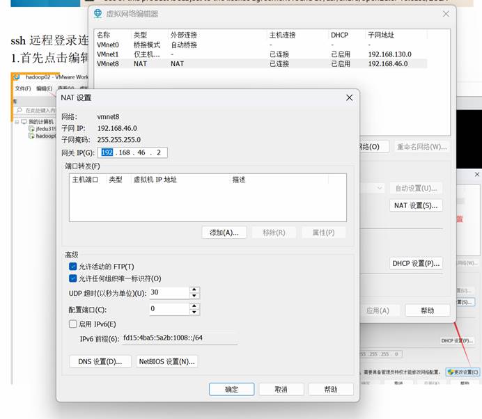 - 点击编辑-然后选择虚拟机网络编辑器-再选择右下角的更改设置