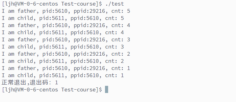 printf("I am father, pid:%d, ppid:%d, cnt: %d