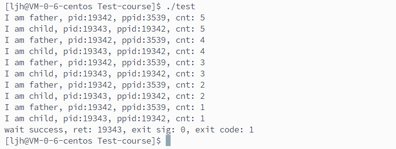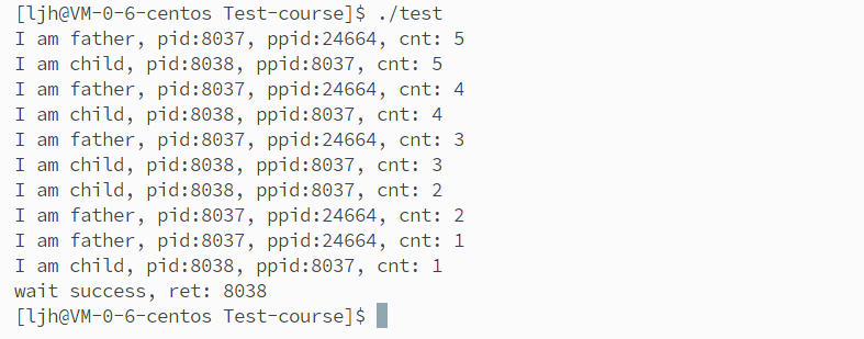 这段代码中,父进程创建子进程后,子进程仅循环 5 次就退出并进入僵尸状态;父进程继续执行自身 10 次循环任务,待自身任务完成后,才调用wait阻塞回收已处于僵尸状态的子进程,最终 “wait success” 标识僵尸进程被成功清理,无资源残留。