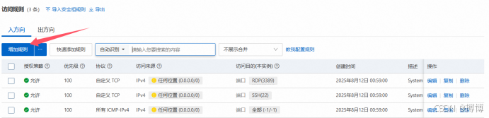 (2)选择实例绑定的安全组 → 点击「配置规则」→ 「入站规则」→ 「手动添加」。
