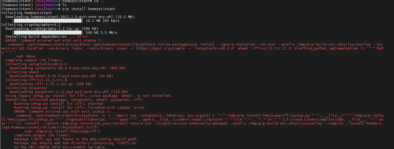 网上提示过,还有一种办法是直接在Termux上安装Home Assistant,但是测试了,卡在了cryptography的安装过程中。行不通