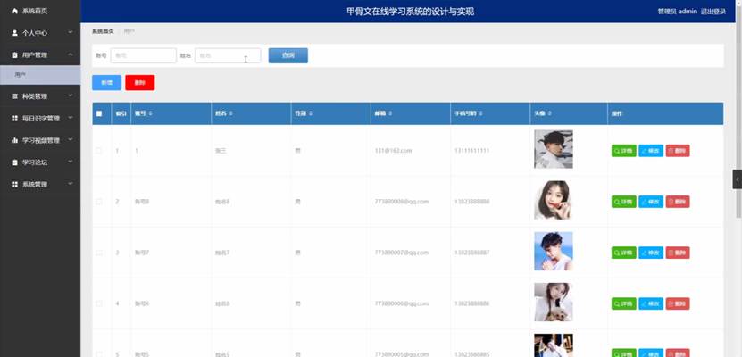 互联网技术的飞速发展改变了人们的生活与学习方式,传统甲骨文学习管理模式面临信息分散、效率低下等问题,难以满足数字化学习的需求。当下,甲骨文学习的规模不断扩大,新型管理模式逐步推进,信息化建设成为提升学习管理效率、规范学习流程的关键。然而,现有部分系统技术老旧、维护困难,无法适配现代信息化发展需求,因此开发一款功能简洁、操作便捷的甲骨文在线学习系统十分必要。