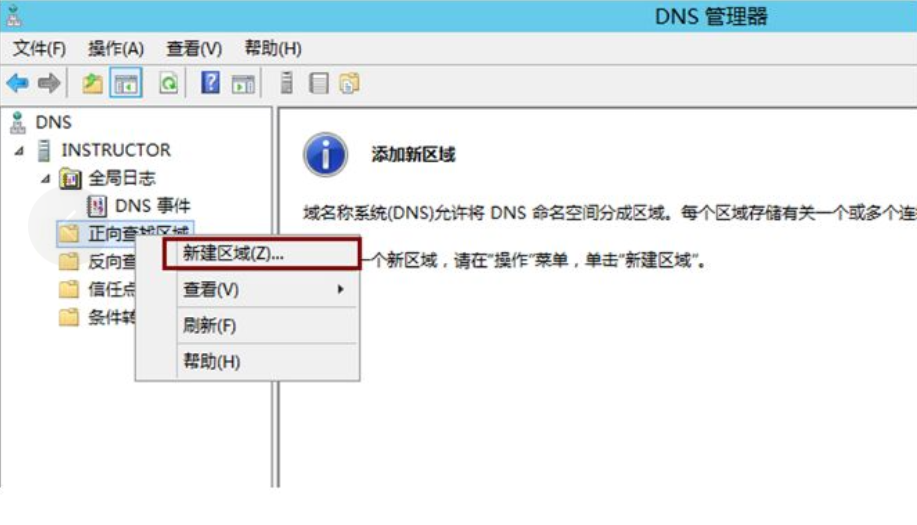 - 右键「正向查找区域」→「新建区域」,启动「新建区域向导」;