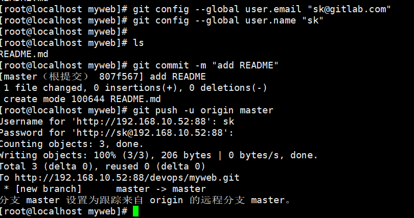 git remote add origin http://192.168.10.13/devops/myweb.git