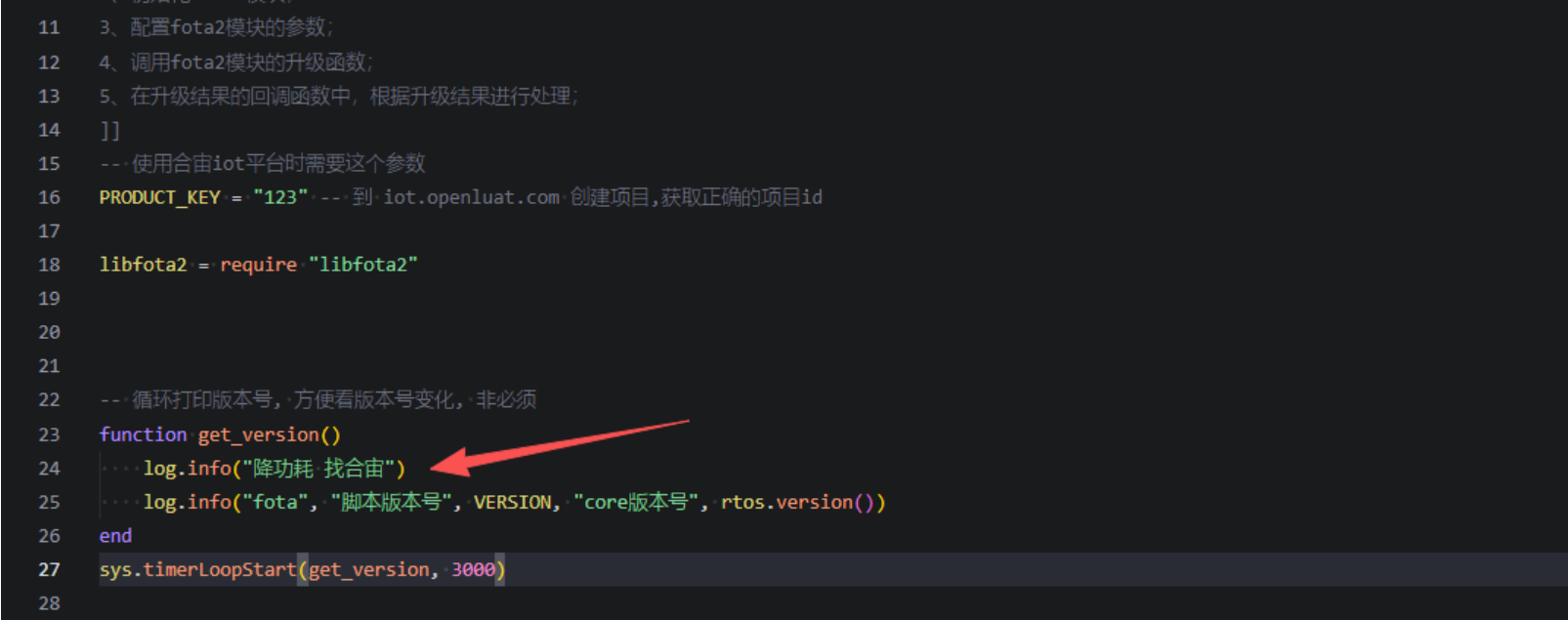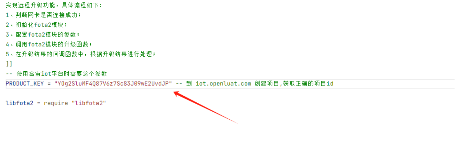 2、PRODUCT_KEY:使用 IoT 平台时,必须在 main.lua 中正确定义全局变量 PRODUCT_KEY,其值需从 IoT 平台的项目中获取。