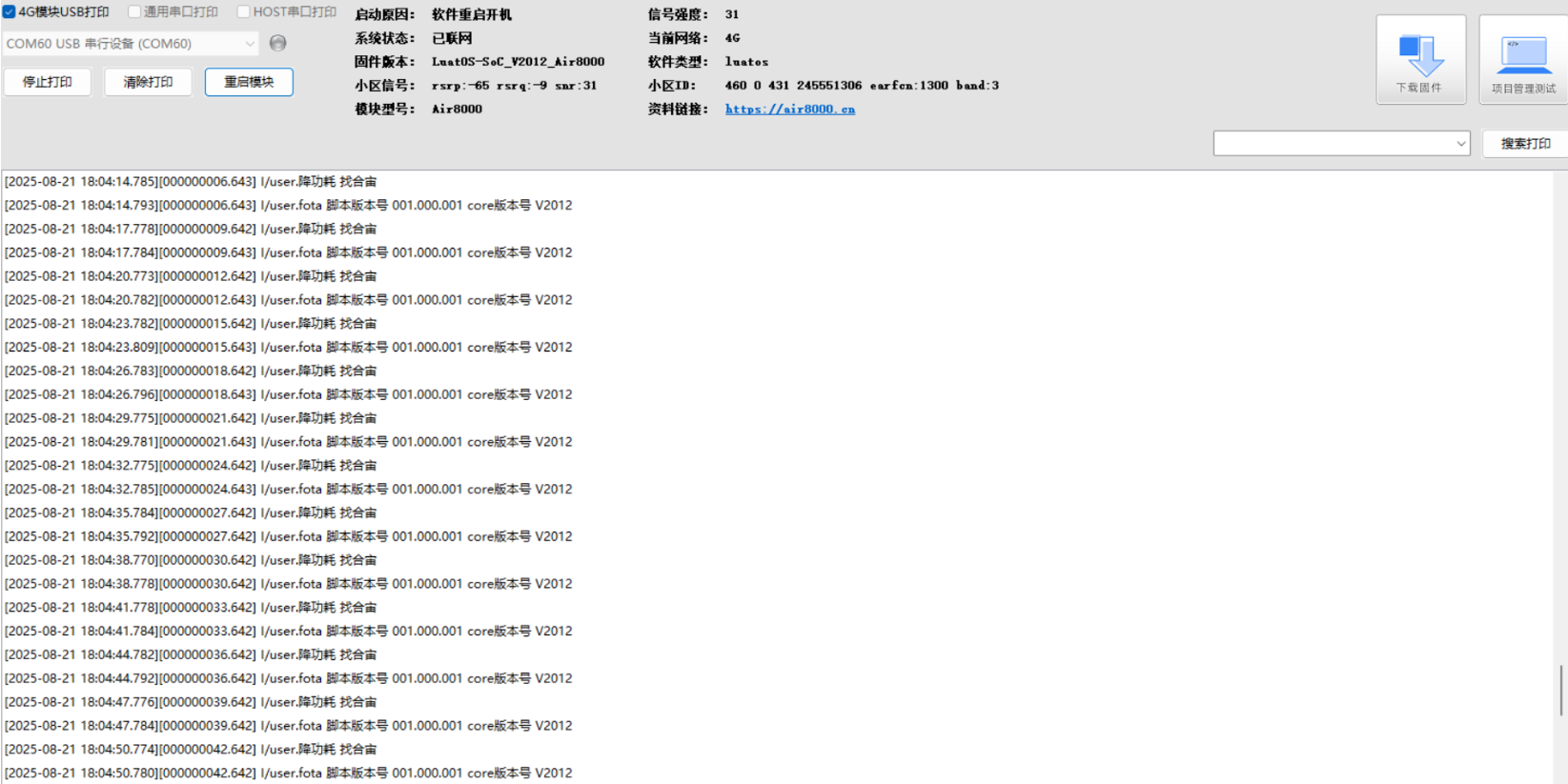 - 内核固件:Air780EPM V2012 版本固件(理论上,2025 年 8 月 10 日之后发布的固件都可以)