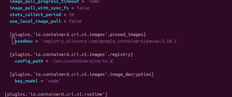 sandbox = 'registry.aliyuncs.com/google_containers/pause:3.10.1'(使用国内源)