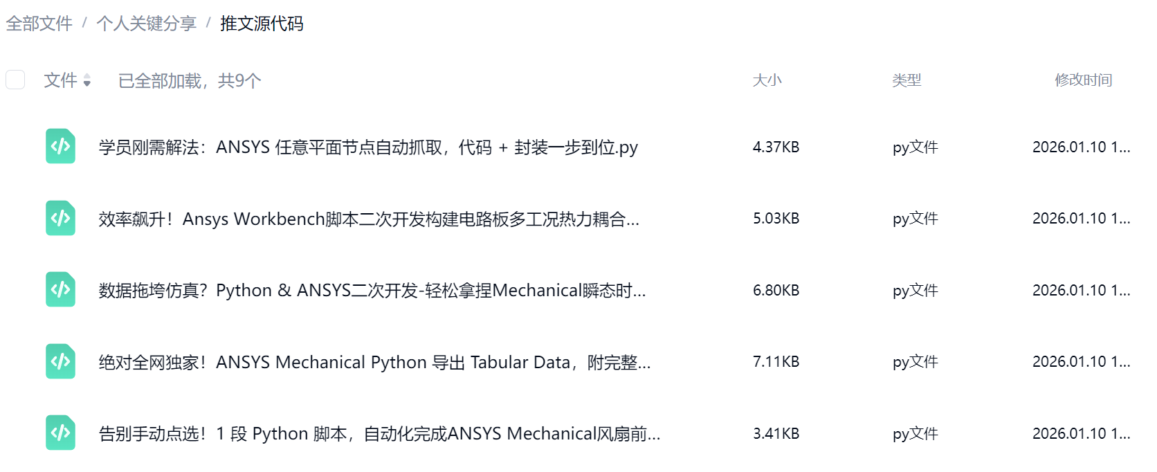 通过这个小案例,我们实现了一个看似复杂的功能,但核心代码其实只有几十行。这就是ANSYS二次开发的魅力:用低成本的Python代码,解决高价值的工程问题。