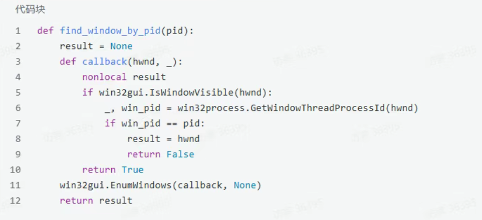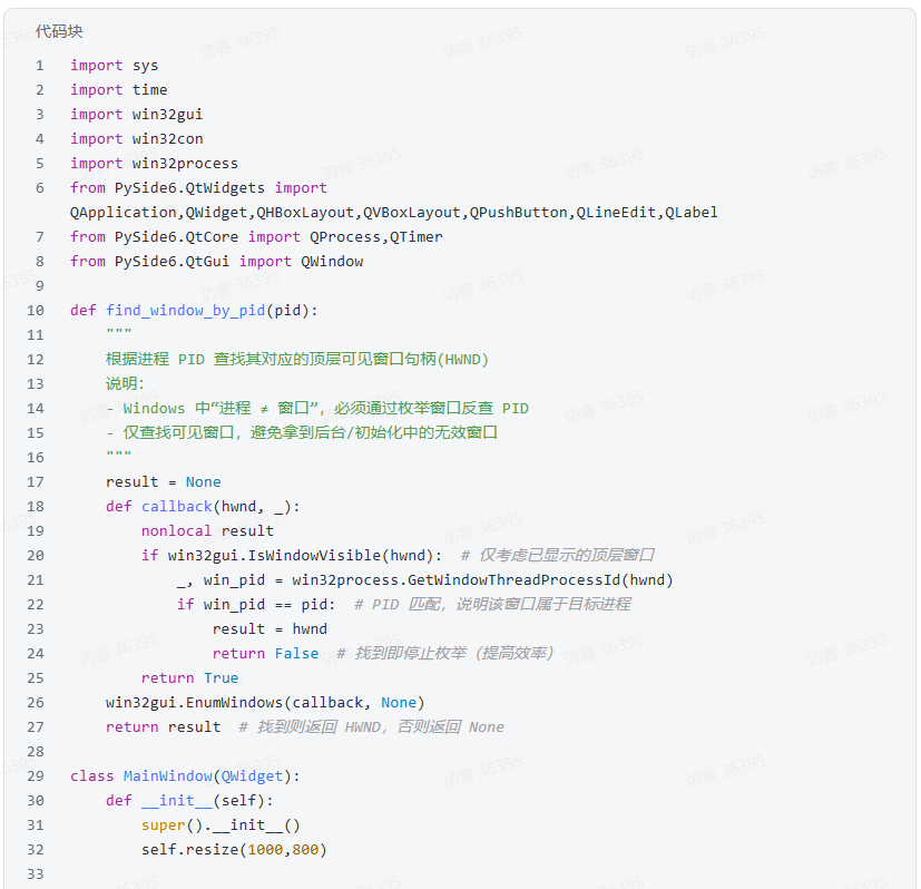 这个函数是实现窗口嵌入的核心,作用是根据进程PID找到对应的Viewer窗口句柄。具体思路为,枚举所有可见窗口,再反查窗口对应的PID,才能精准定位到Viewer窗口。