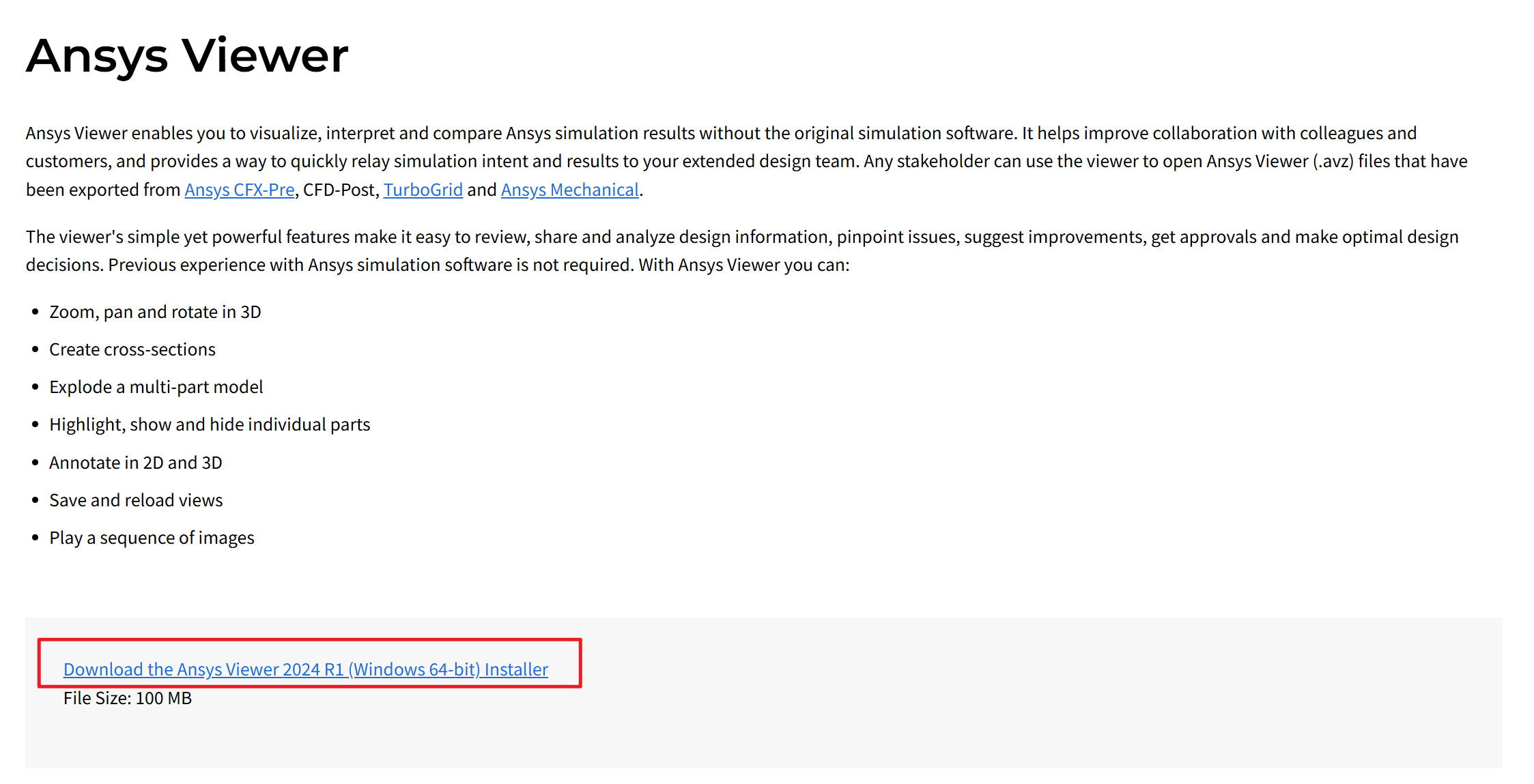(1) 去ANSYS官方网站下载2024 R1版本安装包(Windows 64-bit)