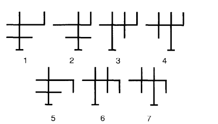 整合性失认证的另一个案例来自Behrmann等人(Behrmann,Moscovitch和Winocur ,1994)的研究,实验者要求患者CK对图5(a)进行临摹,所画图画如图5(b)。令人惊讶的是,CK并不是一个个形状的画(如先画一个正方形,然后画一个圆形),而是一笔笔的画,笔画顺序标示在图5(b)中。即如他先画第1边,然后第2边,然后第3边而非第9边或者第8边...。