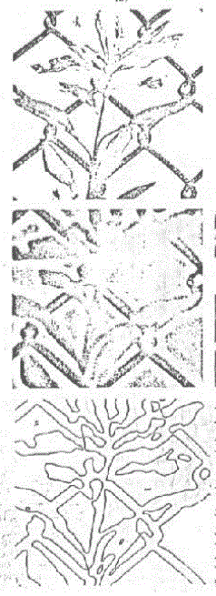 得到以上基元只是完成了未处理的初始简图,还需要对这些基元进行聚类,才能得到初始简图。根据基元的属性(位置、方向、对比度、长宽度),利用接近性、相似性、连续性等格式塔原则,可以将小的基元组合成大的基元。另外,也可以通过纹理的类型及其密度类聚这些元素。聚类的过程是循环的,直到无法聚类为止。如下图11,图(a)先利用接近性组合成团,得到图(b)。然后根据连续性,团会连接成线,即图(c)。