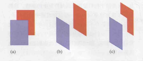 (c)混杂的情况。物体很少孤立的存在于视觉中,更经常的是互相混杂在一起,但我们的知觉系统可以很快的把场景中的各个客体分离;