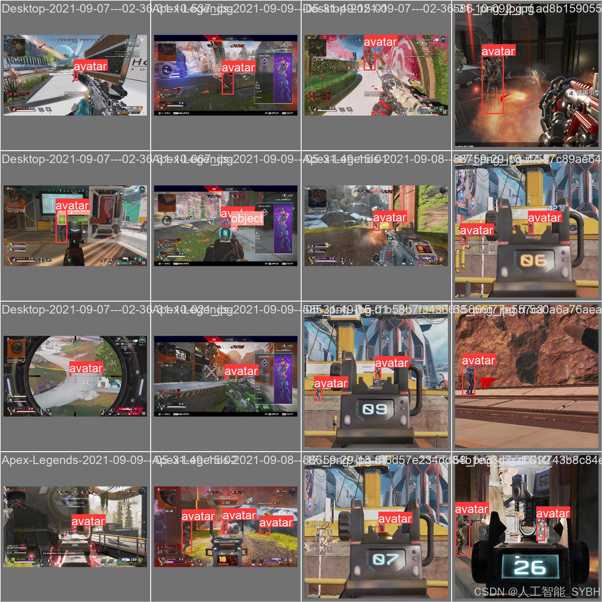 本项目基于YOLOv10目标检测算法,开发了一套专门针对Apex Legends(Apex英雄)游戏中人物与物体的识别检测系统。系统通过对游戏画面进行实时分析,能够准确识别游戏中的玩家角色(avatar)和各种游戏物体(object),为游戏AI开发、战术分析、辅助工具制作等应用场景提供技术支持。项目使用自定义收集的Apex游戏数据集进行训练和验证,包含训练集2583张、验证集691张和测试集415张图像,共计3689张标注图像。经过优化的YOLOv10模型在该数据集上表现出色,能够满足实时游戏分析的需求。