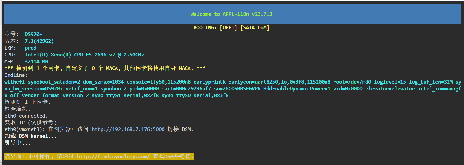 重启成功后,黑群晖安装成功。