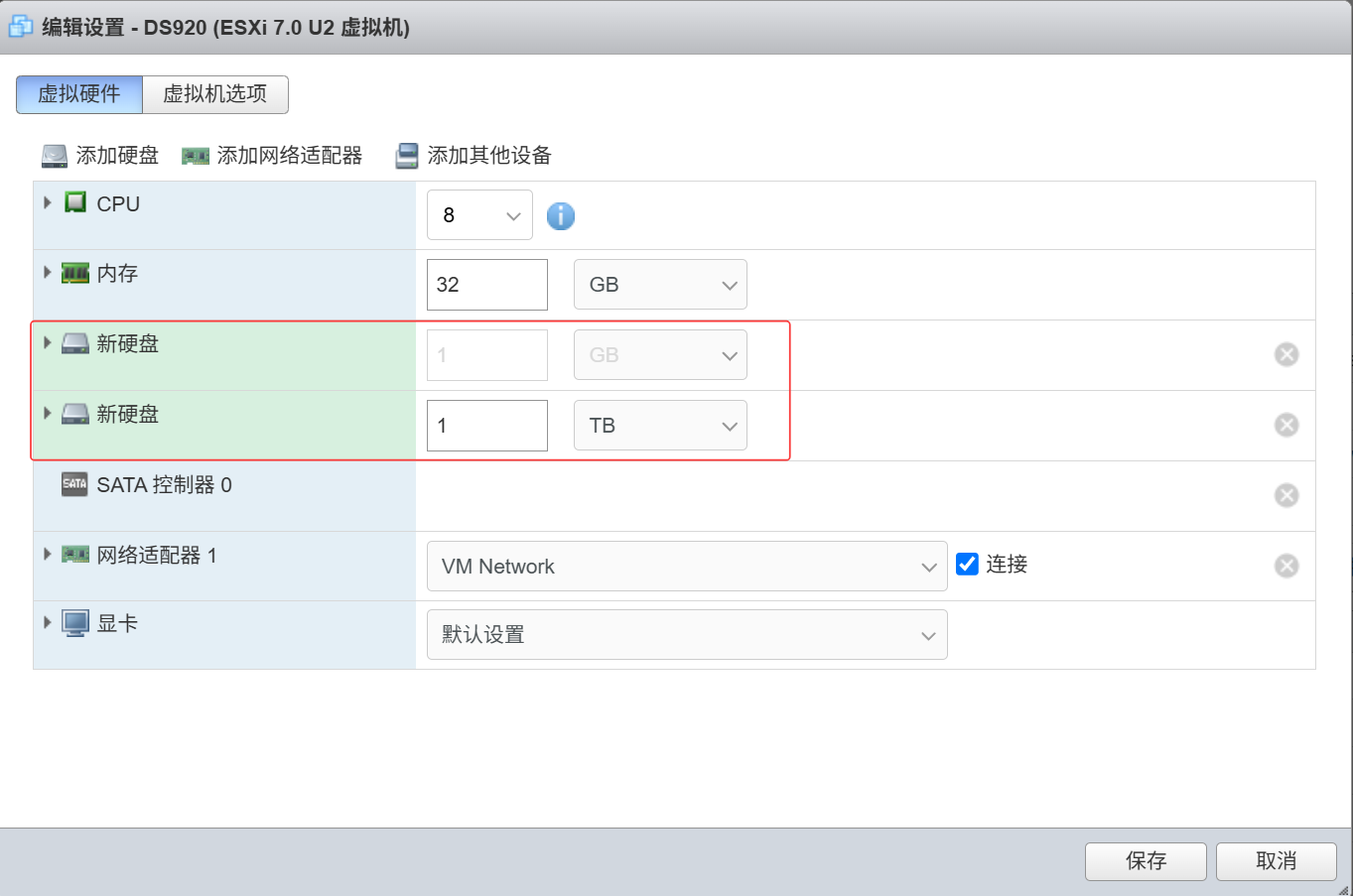 成功之后,再添加一块或是多块“新标准硬盘”,这些硬盘是后面黑群晖安装成功之后可使用的存储空间,所以根据自己的需求来进行添加,在这里我添加了一块1T的:
