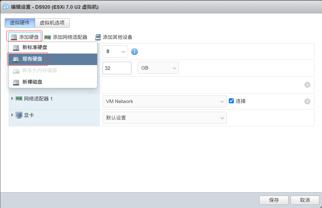 接下来需要对创建好的虚拟机进行配置,点击“编辑”,“添加硬盘”,“现有硬盘”: