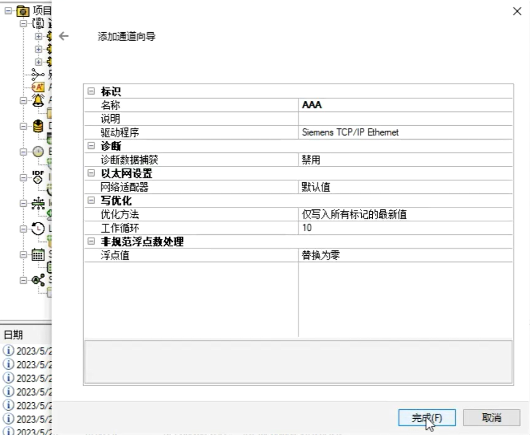 使用Siemens TCP/IP Ethemet通信协议,命名为“AAA”
