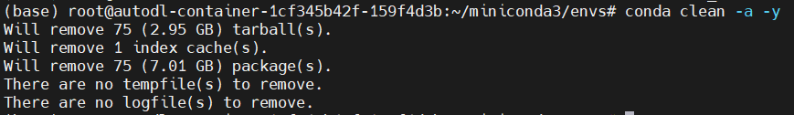 du -sh /root/miniconda3/pkgs/ && rm -rf /root/miniconda3/pkgs/* # conda的历史包