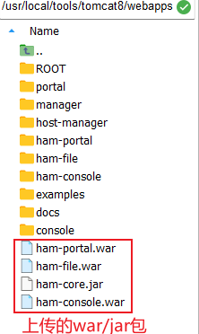 1. 若该目录下有旧的jar/war包,需要先删除,在上传新的