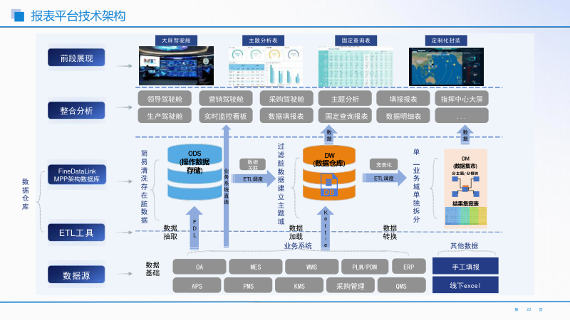 - 数据存储层:采用 MPP 架构数据库构建数据仓库与数据集市。