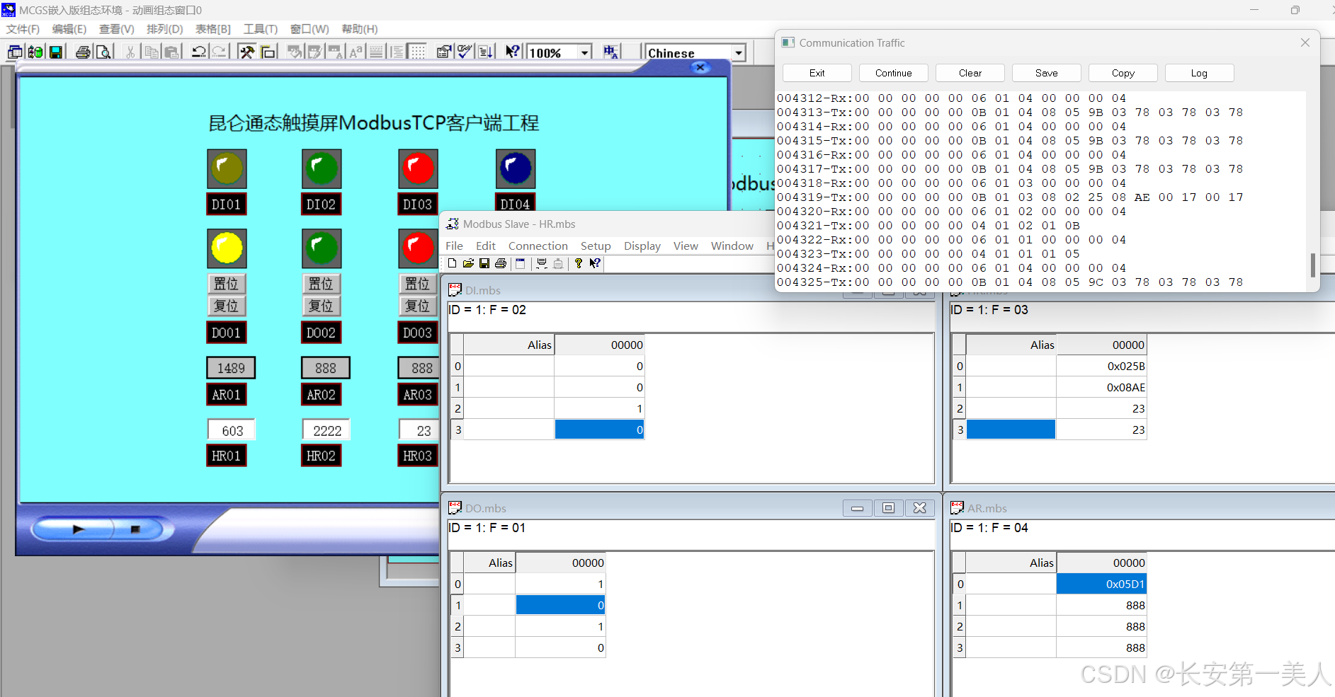 昆仑通泰触摸屏Modbus TCP服务器工程 || TCP客户端工程