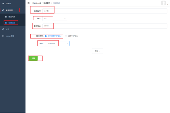 - 9. 创建客户端, 注意:Host值为上面复制的隧道公网地址!!