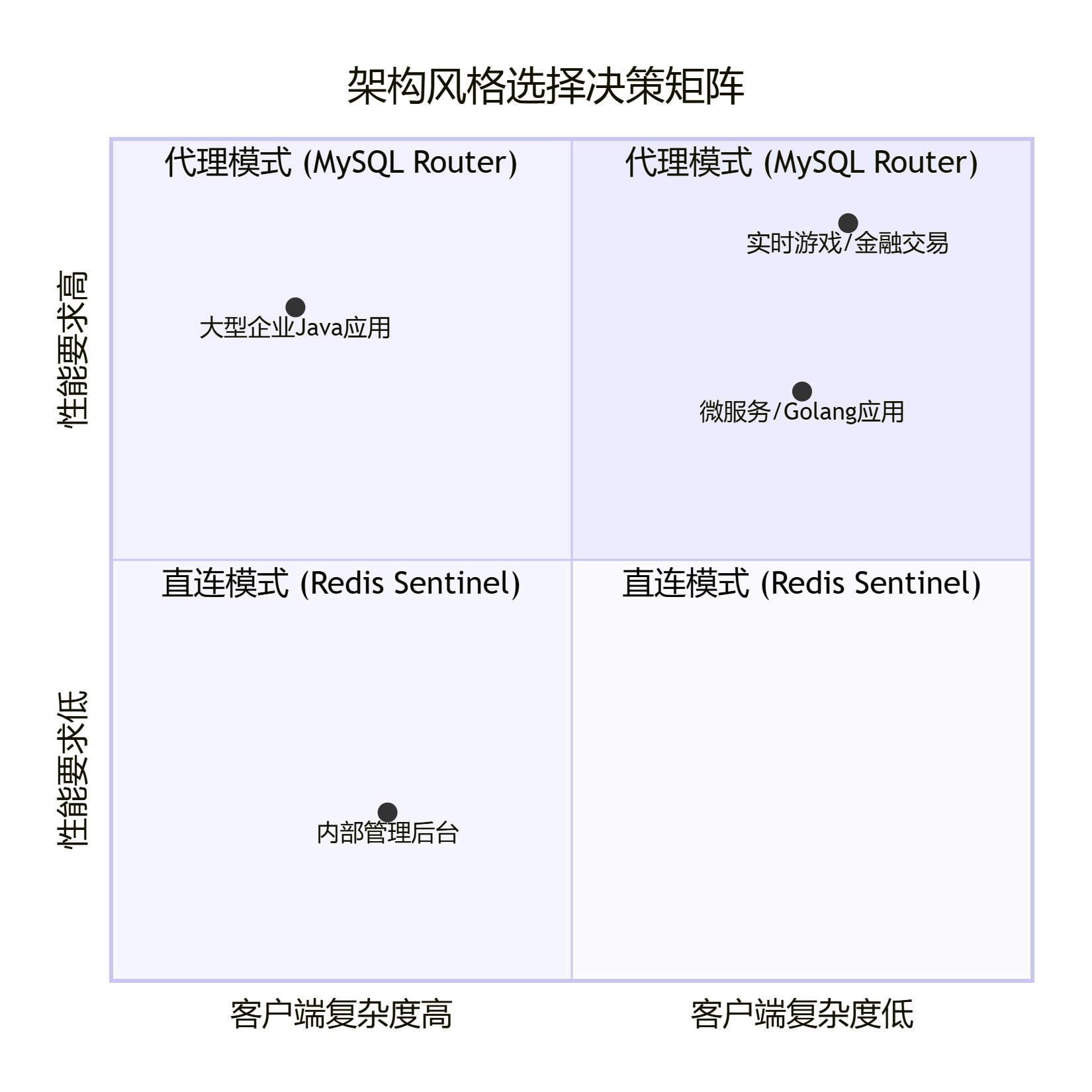 | 耦合度 | 客户端与 Redis 服务发现机制耦合 | 客户端与 MySQL 集群架构解耦 |